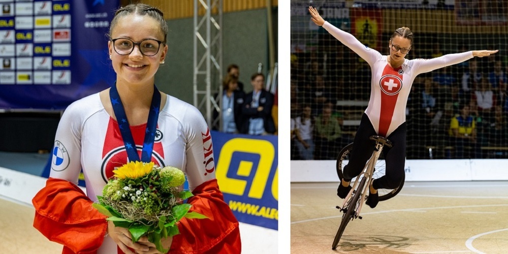 Lea Schönenberger, die sich im Frühling souverän für die EM qualifiziert hatte, trat erst am zweiten Wettkampftag an. Für die 17-jährige Uzwilerin war es die erste Teilnahme an einer internationalen Meisterschaft. Sie reichte die dritthöchste Punktzahl ein, dementsprechend war das Ziel eine gute Kür zu zeigen und sich so gegen die Konkurrenz durchzusetzen. Kurz vor fünf Uhr war es endlich soweit und Lea betrat mit einem Lächeln die Fahrfläche. Die Stimmung vor Ort war super, denn einige Minuten zuvor hat das Schweizer Radball-Team den Finaleinzug geschafft. Alle Uzwiler Fan’s blickten gespannt auf die Fahrfläche und schauten Lea bei ihrem Auftritt zu. Es gelang ihr das Programm sturzfrei und mit ihrer gewohnt eleganten Haltung zu zeigen. Auch die schwierigen Übungen meisterte sie ohne Probleme. So standen am Schluss 125.73 Punkte auf der Anzeigetafel, was nur knapp unter ihrer Bestleistung war. Nach dem Auftritt der beiden deutschen Fahrerinnen war klar, dass Lea die Bronzemedaille gewinnen würde. Die Freude im Uzwiler Lager war gross, denn bei den 1er U19 gewann vor 12 Jahren zuletzt eine Uzwilerin eine EM-Medaille. Mit der EM endete für Lea auch die Zeit in der Kategorie U19.