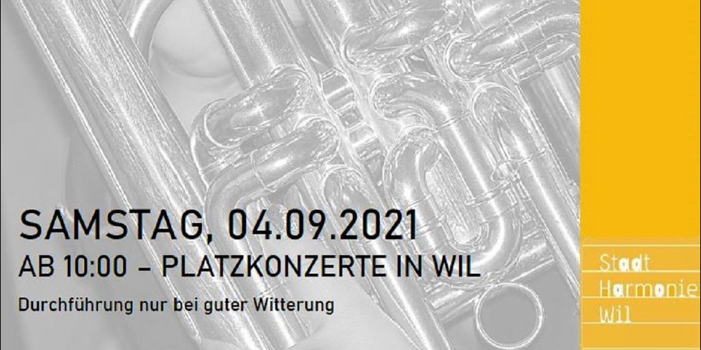Ab 10:00 Uhr morgens haben Sie die Möglichkeit beim Schlendern durch die Stadt Wil den Auftritten der verschiedenen Blasmusikformationen zu lauschen. Die Auftritte finden nur bei trockener Witterung statt. Über die Durchführung wird am Donnerstag, 2. September, entschieden. Wir halten Sie auf dem Laufenden.