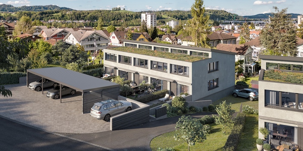 Die Umgebung wird mit einheimischen Bäumen und Sträuchern bepflanzt. Das Ziel ist, die natürliche Idylle der Landschaft aufrechtzuerhalten. Trotz viel Grün ist die Lage zentral: In Gehdistanz liegen Einkaufsmöglichkeiten, ÖV, Schulen und Naherholungsgebiet.