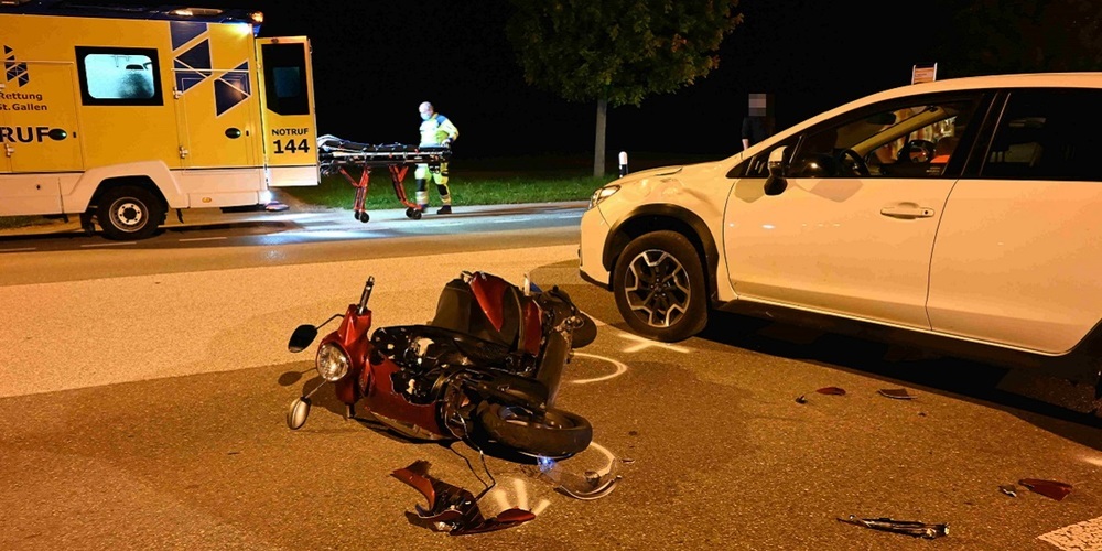 Am Samstag, 18. September 2021, kurz nach 20 Uhr ist es auf der St.Gallerstrasse, Höhe Züberwangen, zu einem Zusammenstoss zwischen einem Auto und einem Motorrad gekommen. Der 18-jährige Motorradfahrer wurde dabei unbestimmt verletzt und wurde durch die Rettung ins Spital gebracht.