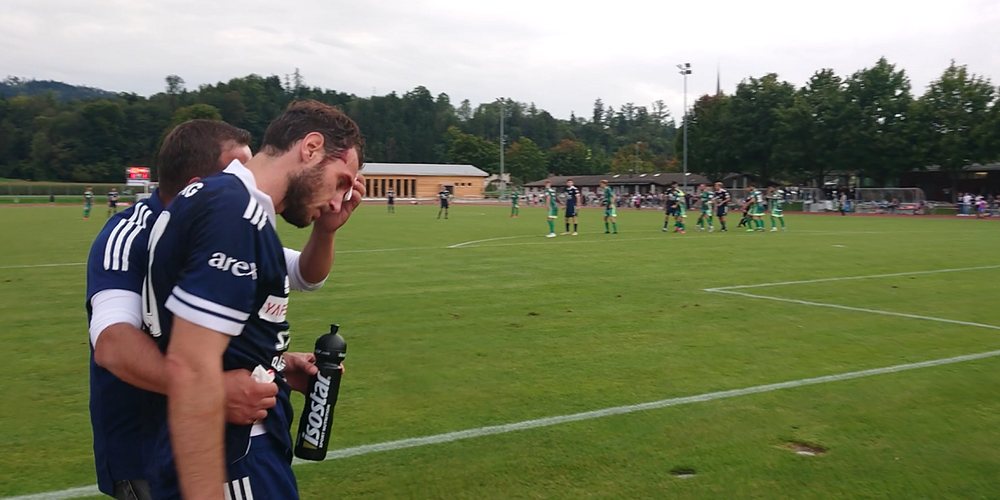 63. MInute: Knöpfel muss mit einer blutenden Kopfwunde verletzt raus. Für ihn kommt Beni Farago.