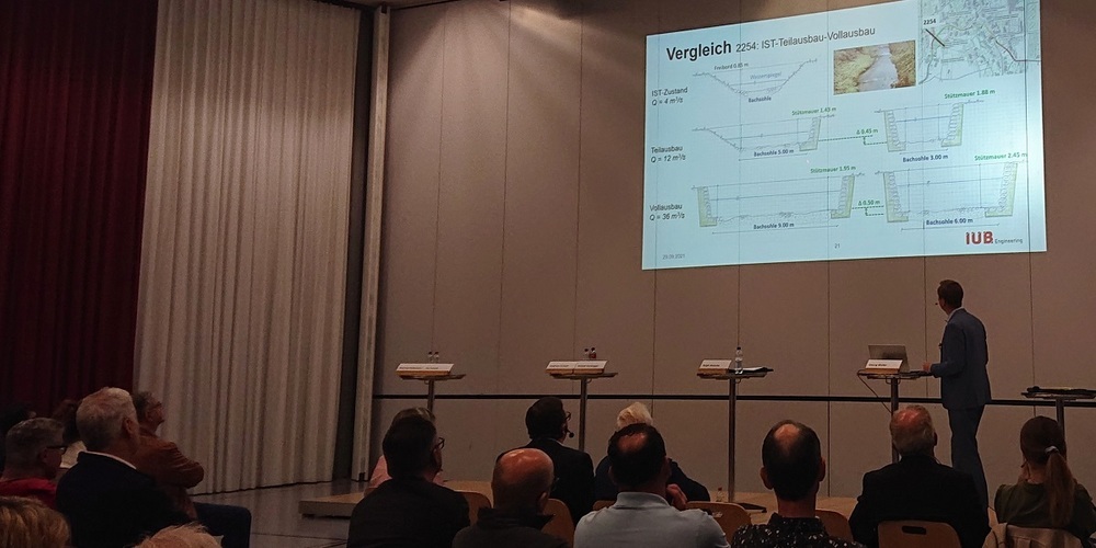Diese Studie wurde an der Informationsveranstaltung vorgestellt. Projektgruppe und Begleitgruppe favorisieren aufgrund der neuen Erkenntnisse die Lösung "Teilausbau des Dorfbachs mit Retentionsbecken".