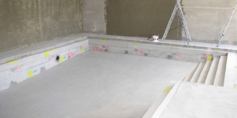 Bei den Umkleidekabinen und im Duschbereich haben bei allen neuen Wände für den getrennten Duschbereich und für die Lehrergarderobe Aufmauerungen statt gefunden.. Ebenso wurde an sämtlichen Wänden der Grundputz aufgebracht. Auch die Unterlagsböden rund um das Becken, im Beckenbereich und im Duschbereich haben bereits ihren Platz gefunden und sind in der Trocknungsphase. Da die Treppenstufen im Beckenbereich beim Entfernen der Keramikplatten beschädigt wurden, mussten diese in standgestellt werden. Der neue Beckenkopf ist vollständig erstellt und ausgeschalt. Auch bei den heruntergehängten Decken hat man eine Entfernung vorgenommen. Ebenfalls wurde im Eingangsbereich und in der Damenumkleide an den Aussenwänden die Dämmung ersetzt. Zudem ist der Technikraum nun farblich aufgefrischt. Für die Sanierung des bereits abgebrochenen, heruntergehängten Deckensystems im Schwimmbadbereich ist eine Arbeitsbühne erstellt worden. Der Gipser führt zurzeit die Grundputzarbeiten im Bereich der zu sanierenden Decke aus. In den nächsten Tagen finden ausserdem noch eine Zumauerung der alten Lüftungsöffnungen und eine Montage der neuen Lüftungskanäle statt. Ebenso wurde bereits besprochen, welche Farbe die neuen heruntergehängten Metalldecken, Türen und Türrahmen erhalten sollen. In der Planung verankert ist ebenfalls, welche Wände mit einem Plattenbelag belegt und welche verputzt werden.
