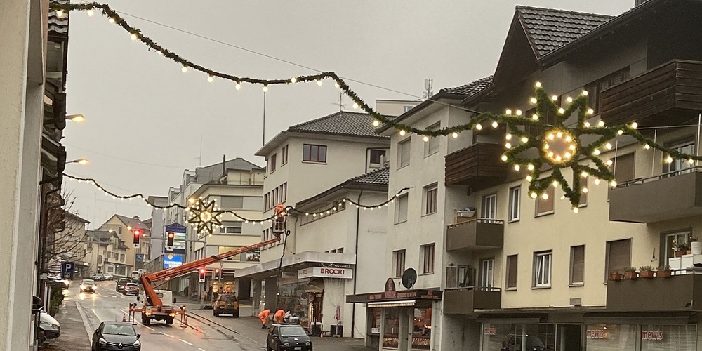 Die Weihnachtsbeleuchtung wird in Uzwil montiert
